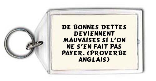 De bonnes dettes deviennent mauvaises si l'on ne s'en fait pas payer. (Proverbe anglais) Porte Clé