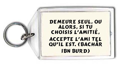Demeure seul, ou alors, si tu choisis l'amitié, Accepte l'ami tel qu'il est. (Bachâr Ibn Burd) Porte Clé